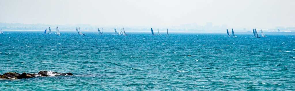 Then…decksweeper rigged Viper makes it to top mark first! Ahead of a hot F18 fleet and Nacra 17! Ah the joy of an open racetrack ahead…but which way to go now?