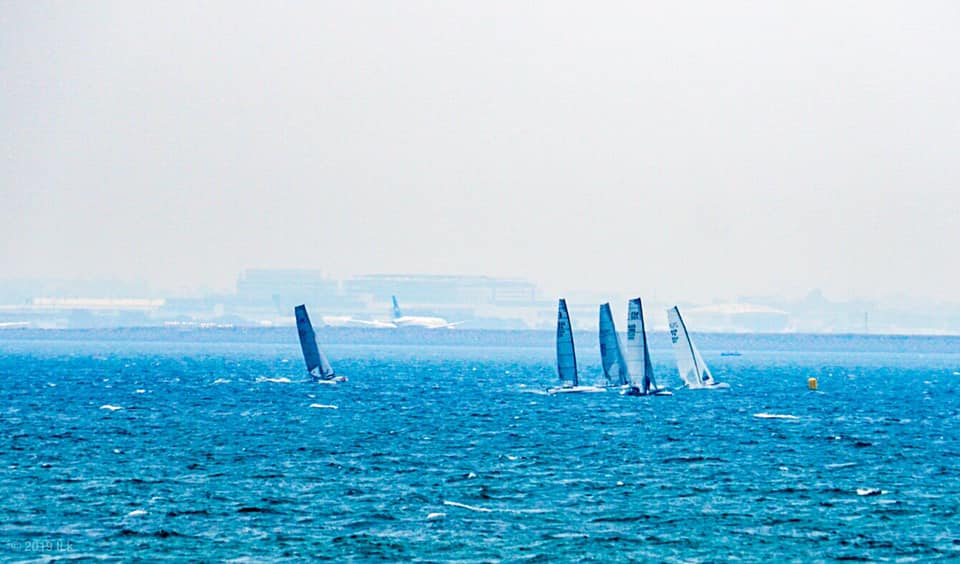 And then the inevitable “hey dad we beat the Nacra 17 to the top mar|||” Three bump mid sentence stop here and get off the boat happens. A view of the young skipper sliding down the trampoline from an angle usually reserved for drones and helicopters is my last image just before I finish my magnificent catapult arc past the bows for a landing in the welcoming waters of Botany Bay.