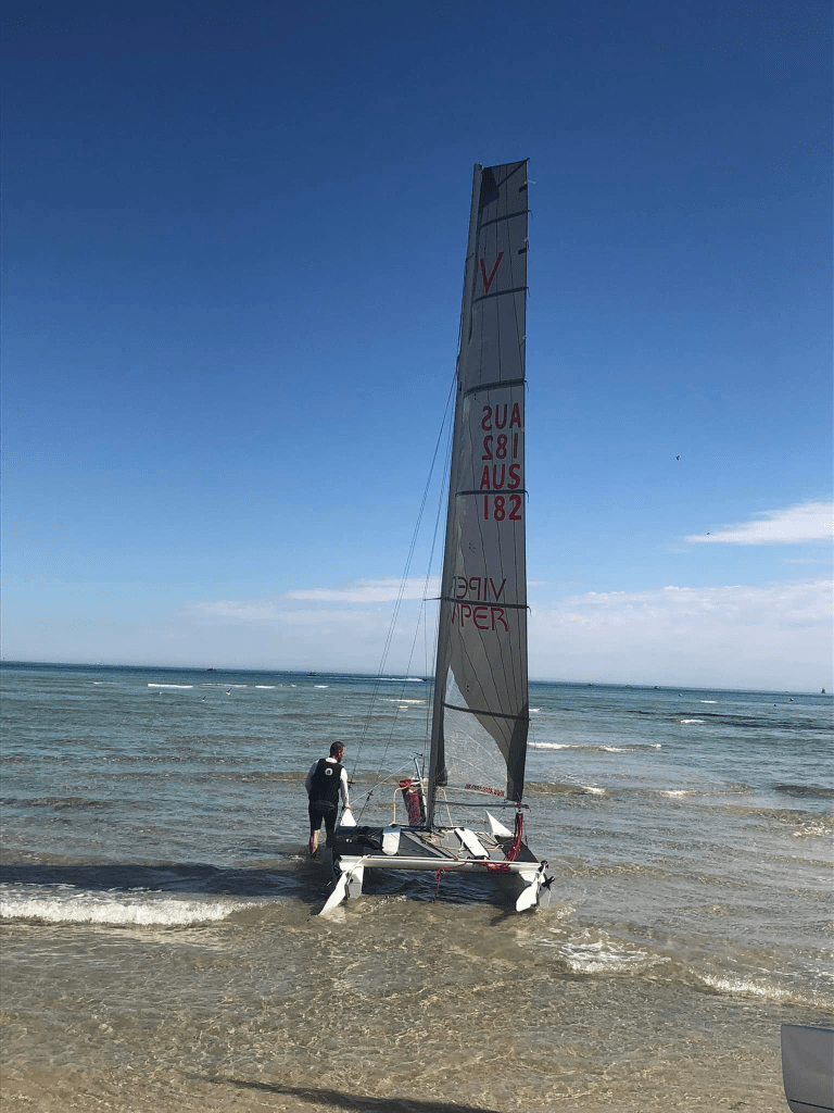 The Victorian State titles are coming up in just 12 short days. Held on the gorgeous waters at Rosebud. We have a good contingent of boats coming across from QLD, NSW and SA to rush off with the title again currently we are expecting a fleet of 8-10 F16s and the usual 14-16 F18s. Seems the Victorians are a bit of a soft target these days…Care to challenge that?
