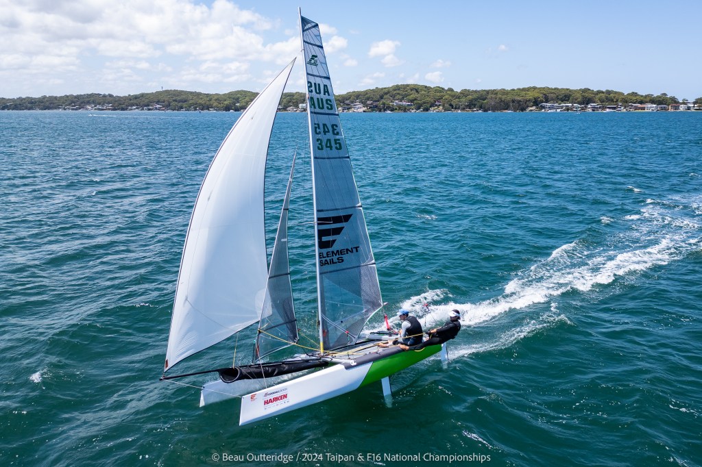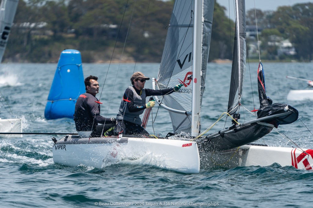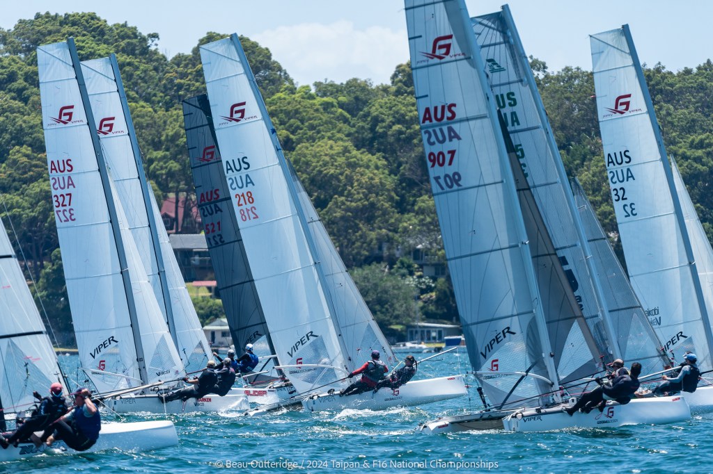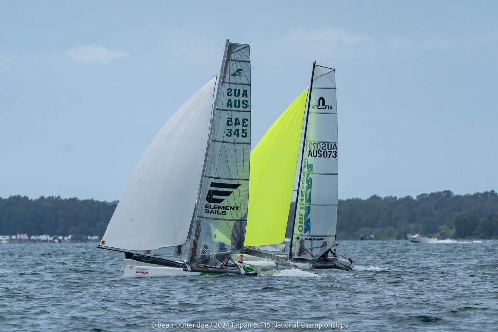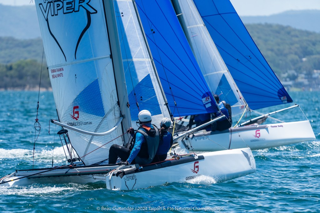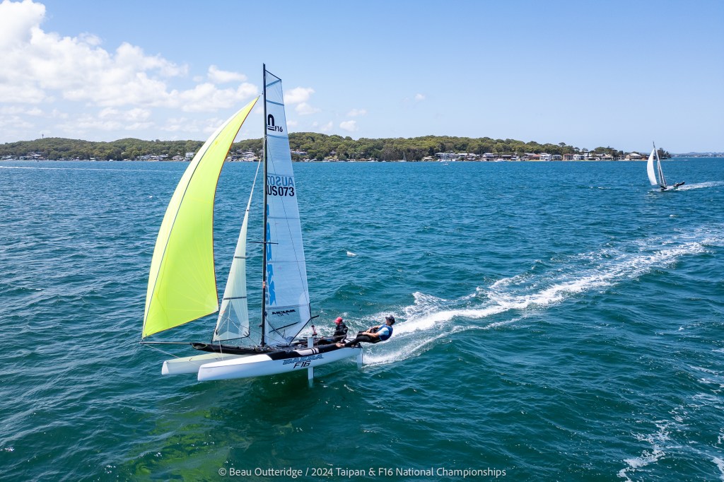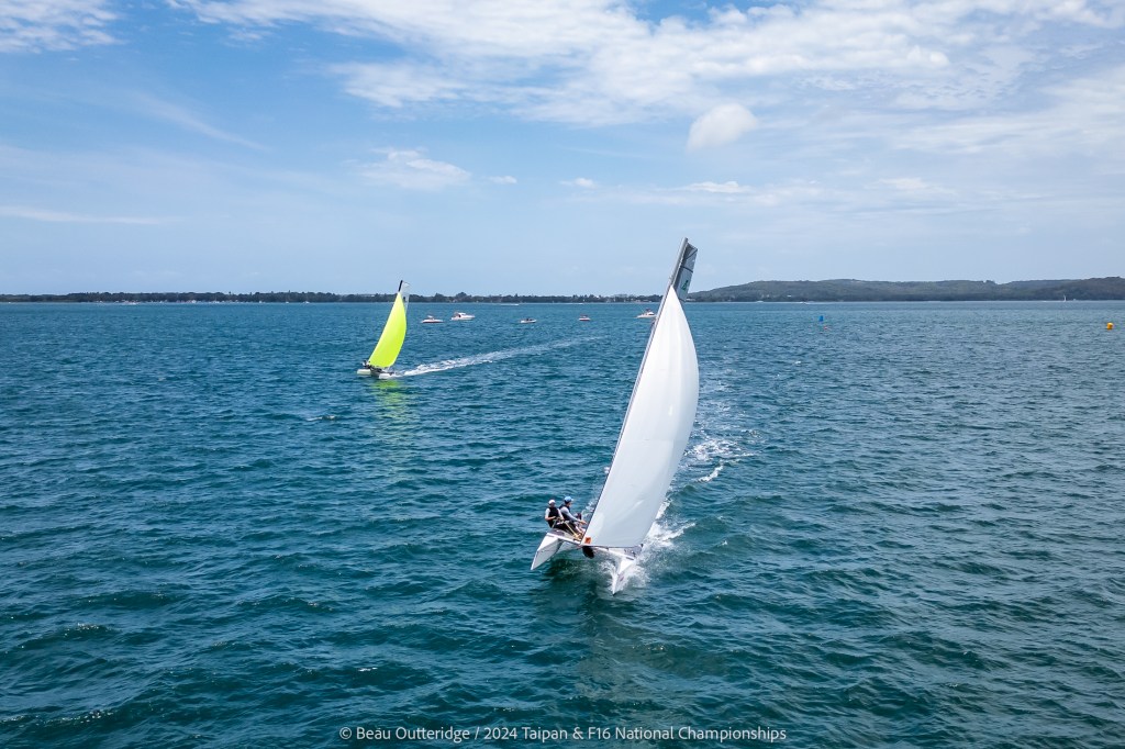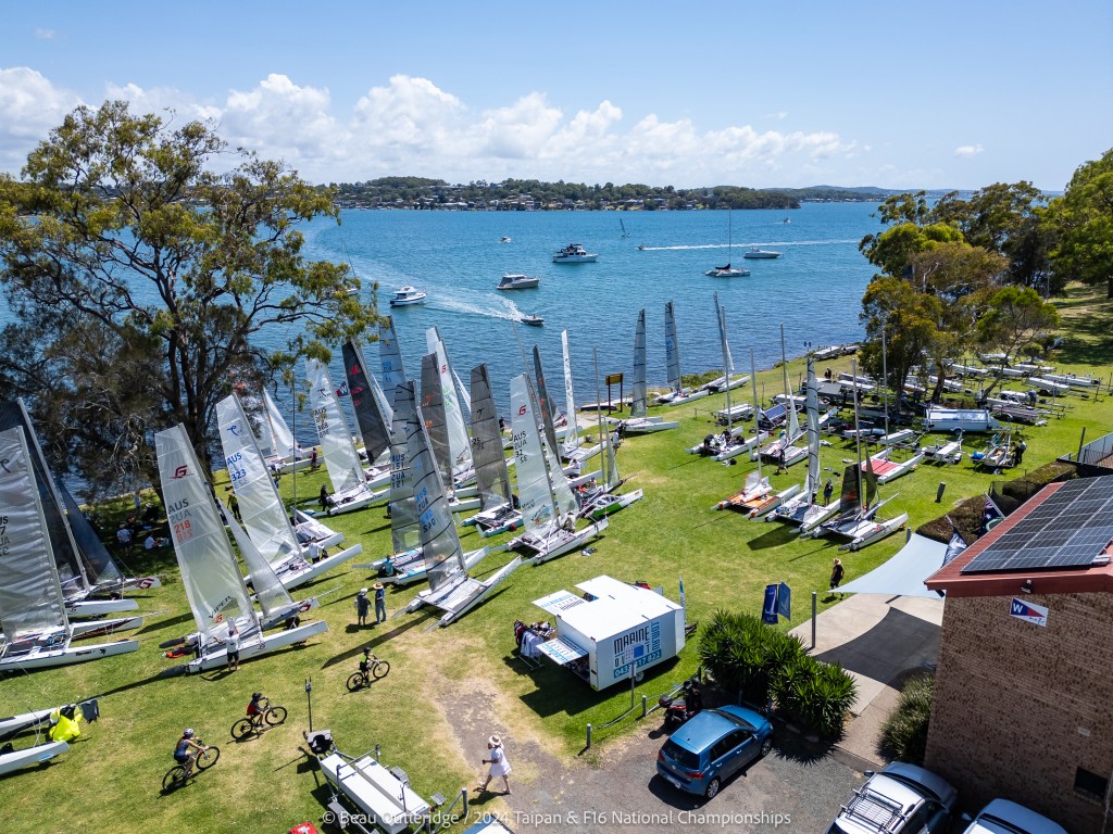 2024 Taipan Catamaran & F16 Catamaran National Championships (30 Dec 2024 – Jan 3 2025) hosted by Wangi RSL Amatuer Sailing Club, NSW. Photo by Beau Outteridge