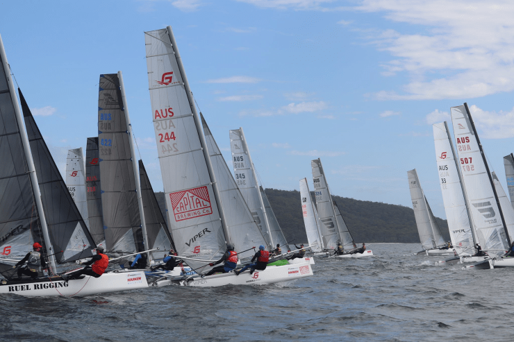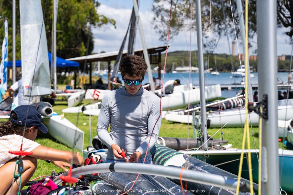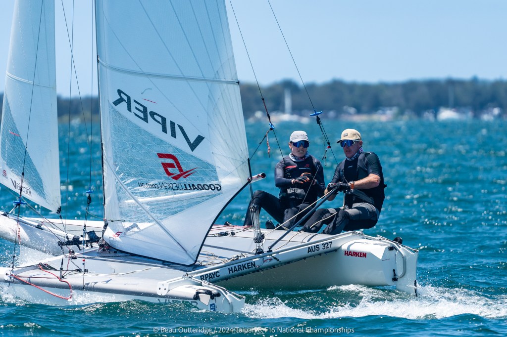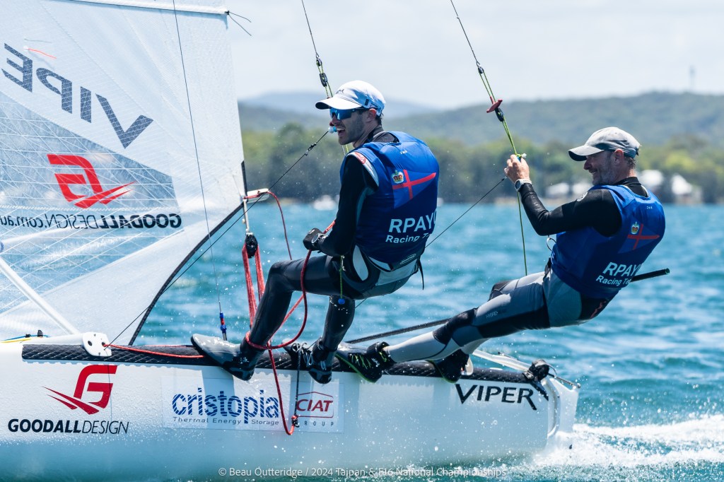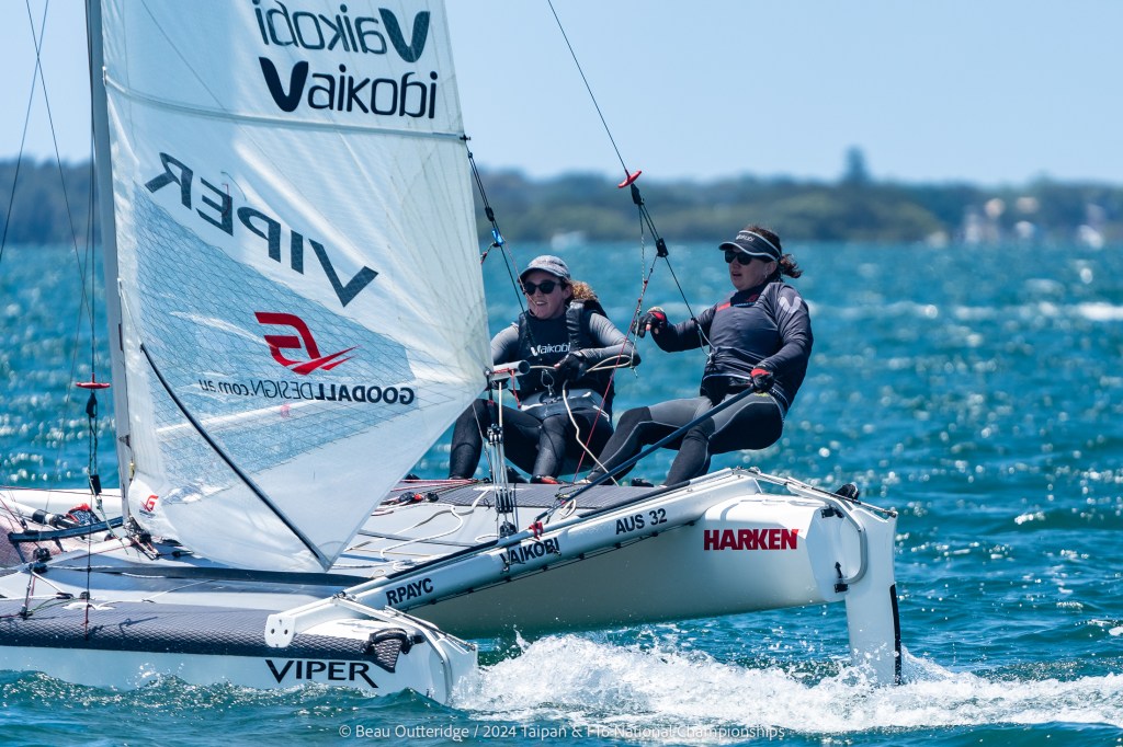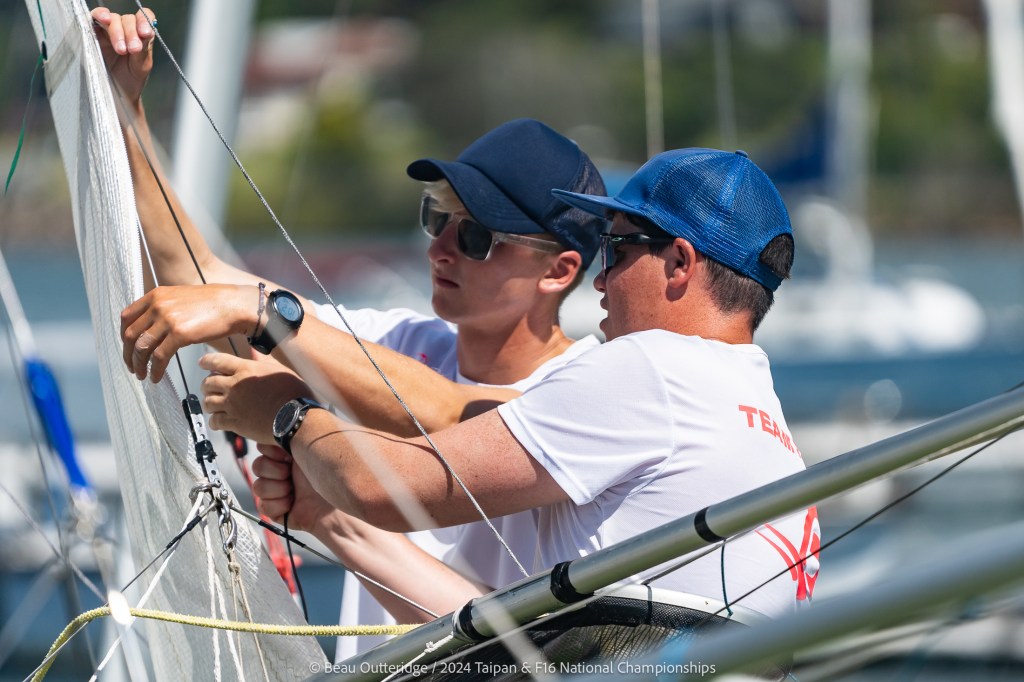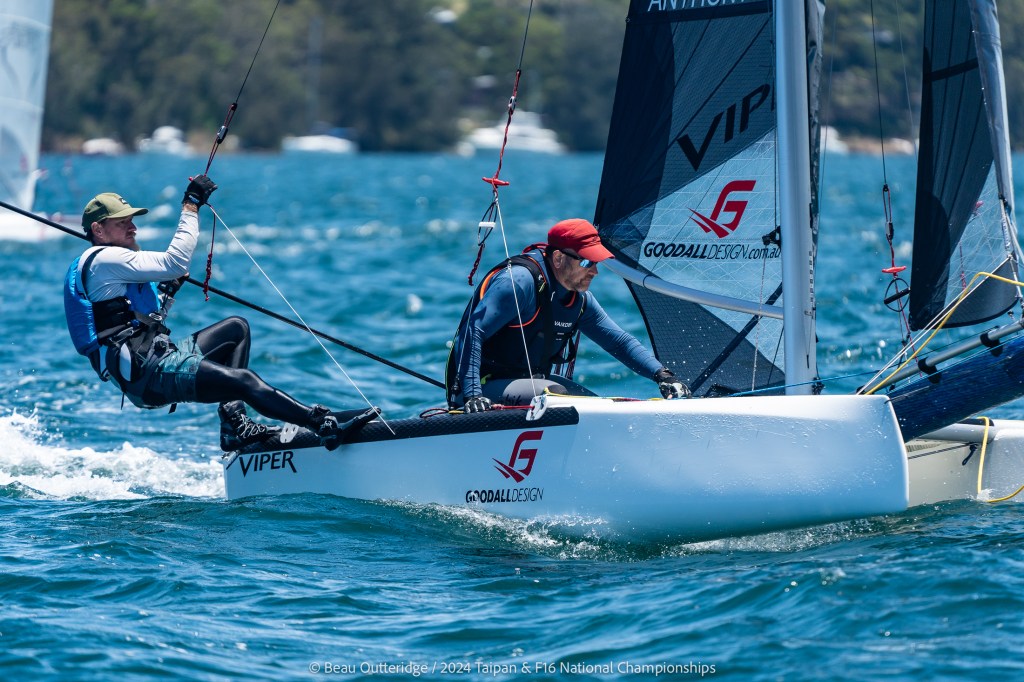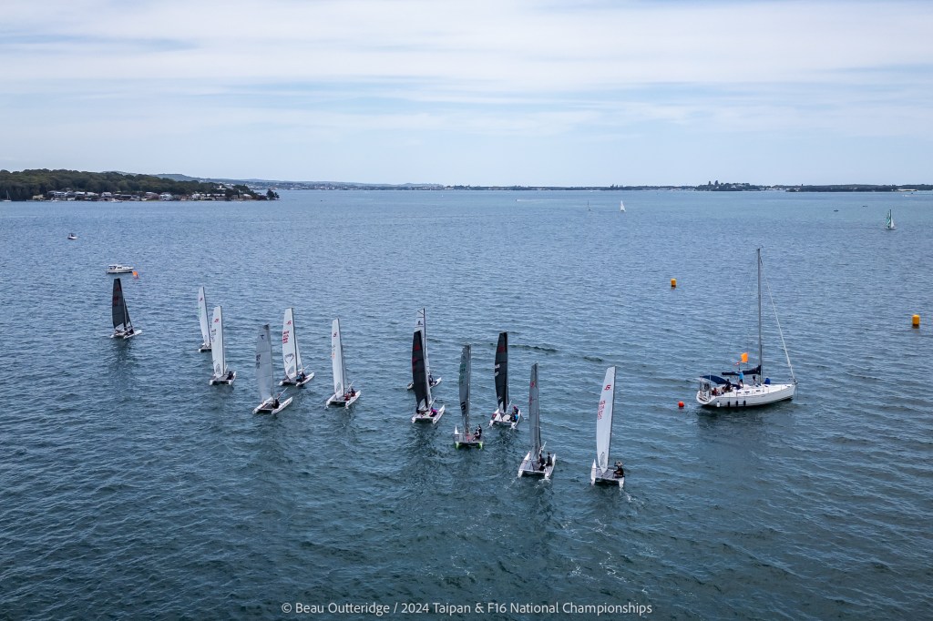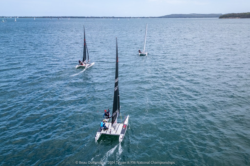 2024 Taipan Catamaran & F16 Catamaran National Championships (30 Dec 2024 – Jan 3 2025) hosted by Wangi RSL Amatuer Sailing Club, NSW. Photo by Beau Outteridge