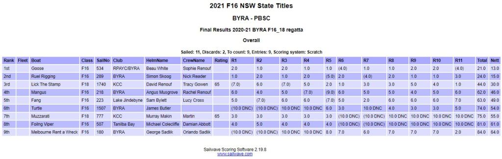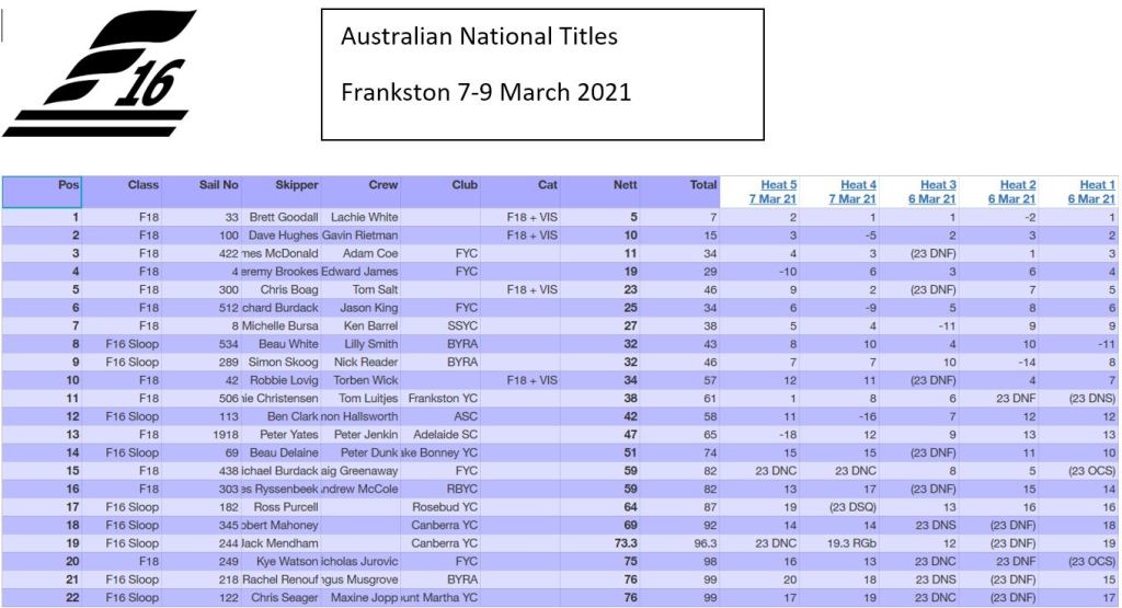 2022 F16 National Titles – Salamander Bay 6-11 Jan 2022